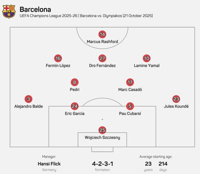 本場比賽,巴薩排出了俱樂部歷史上第三年輕的首發(fā)陣容。該陣容平均年齡為23歲214天,僅次于2002年10月對布魯日(22歲362天)以及2011年12月對鮑里索夫(23歲93天)的首發(fā)陣容。