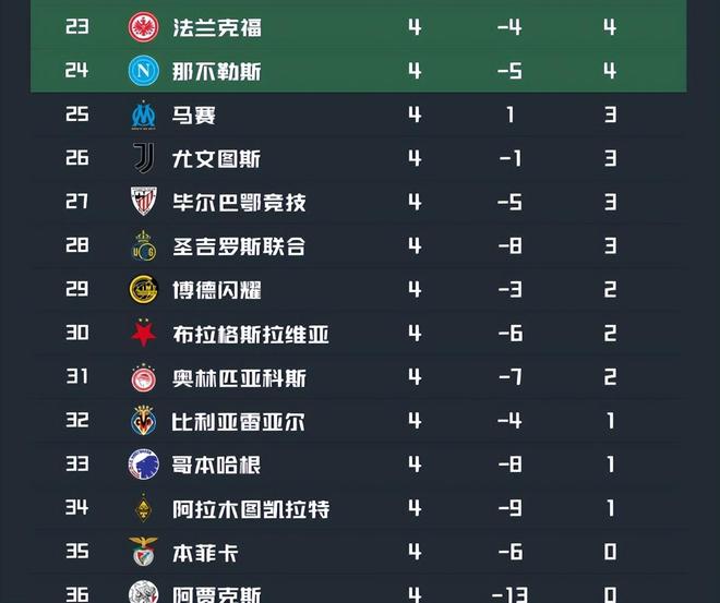 而其他意甲球隊(duì)就沒(méi)有那么出色的成績(jī)了,亞特蘭大4輪過(guò)后7分排在第16,已經(jīng)是僅次于國(guó)米之后的最好的成績(jī)了。至于上賽季的意甲冠軍那不勒斯,不僅上輪被荷甲的埃因霍溫爆錘了一個(gè)6:2,而且4輪4分排在第24,卡在附加賽的區(qū)域。而尤文圖斯4輪過(guò)后更是沒(méi)有獲勝,第26名位列淘汰賽。