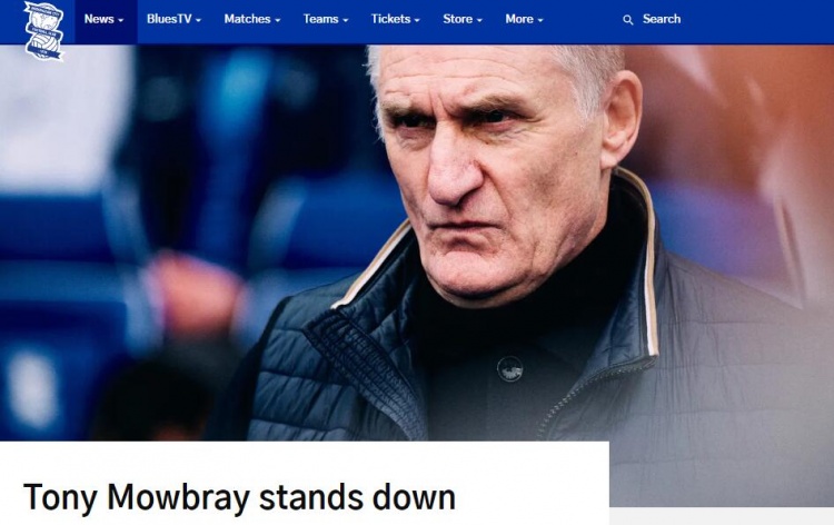 托尼-莫布雷在今年1月接替魯尼成為伯明翰新帥,帶隊8場比賽取得4勝1平3負。2月中旬伯明翰官方發(fā)布公告表示托尼-莫布雷因病需要接受治療,將暫時離開球隊工作崗位。