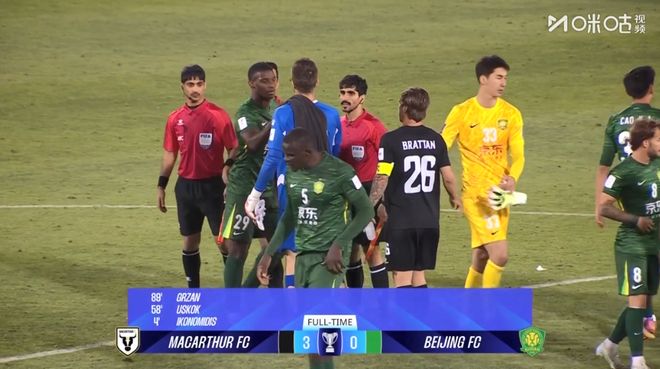 比賽中球員失誤頻頻也折射出北京國(guó)安全隊(duì)的準(zhǔn)備并不充分,也或許真的認(rèn)為對(duì)手實(shí)力平平不值得認(rèn)真?zhèn)鋺?zhàn)吧!比賽剛開始對(duì)手就打進(jìn)1球來個(gè)下馬威,下半場(chǎng)又?jǐn)U大比分。之后北京國(guó)安努力爭(zhēng)取得分但連對(duì)方禁區(qū)都很難進(jìn)入,最后以0比3慘敗下陣來。