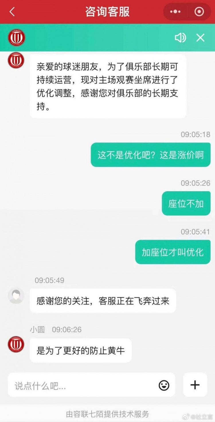 在這張截圖中,蓉城球迷質(zhì)疑了俱樂部對主場觀賽座席進行優(yōu)化調(diào)整的做法,并直言這其實是漲價。